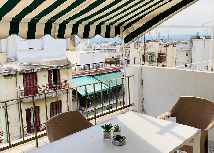 O apartamento Anthonys Rooftop Tessalónica de 45 m² inclui terraço e está localizado a 5 minutos a pé da Igreja do Profeta Elias.